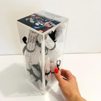5. מתנות המשלבות ברכות - קופסאות שקופות מעוצבות או צנצנות מסוגננות המשלבות ברכות והקדשות אישיות, הם רעיון מרגש המתאים במיוחד עבור מתנה לבוס שעוזב.