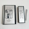 מתנה מדהימה להעניק לזוג שמתחתן לכבוד מסיבת אירוסין מחברת עם חזית אלומיניום מודפסת בעיצוב גרפי אישי, לצידה עט כסופה בעיצוב מסורתי – מודרני, משולבת בטכנולוגיות ייצור שנלקחו מתעשיית החלל של יצרנית העטים