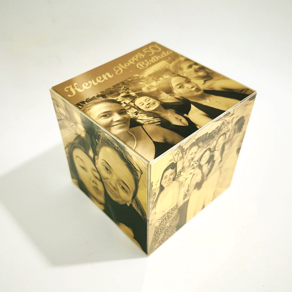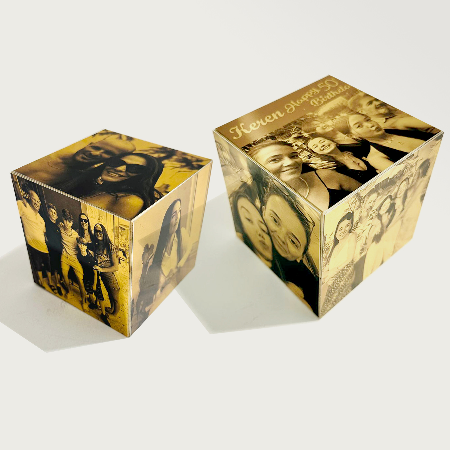 תשכחו ממתנה בנאלית למשרד. לפניכם מתנה אקסטרה מיוחדת, קוביית זהב מתכתית עליה מודפסות תמונות אישיות